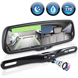 Pyle Backup Car Camera Rear View Mirror Screen Monitor System with Parking & Reverse Safety Distance Scale Lines, OEM Fit, Waterproof & Night Vision, 170° Angle Adjustable, 4.3″ LCD Display-(PLCM4550)
